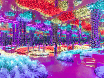 Kamer na kamer biedt meeslepende illusies en landschappen, van bioluminescente tuinen (zoals in Avatar) tot omgekeerde watervallen en kamers vol spiegels met robotachtige lichtshows.